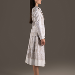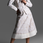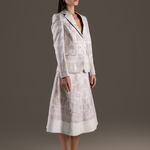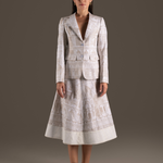 NATACHA VAN's Cream Print Blazer Jacket and A-Line Midi Skirt Set offers timeless elegance. This ensemble captures a chic essence, perfect for garden parties or sophisticated receptions where its understated charm is celebrated.