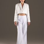 Ivory Cropped Jacket & Wide-Leg Trousers Set