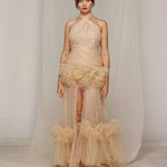 Ivory Halter Ruffle Gown
