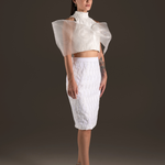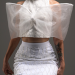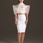 NATACHA VAN's Ivory Tulle Bow Sleeve Two-Piece Pencil Dress is a vision of modern romance. Featuring a sheer bow sleeve top paired with a sleek pencil skirt, this ensemble captures the essence of contemporary femininity. A perfect choice for upscale brunches or celebratory receptions where its chic, coordinated design will shine.