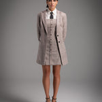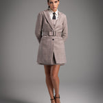 Dress to impress with Natacha Van's Metropolitan Plaid Print Short Coat, a true testament to sophisticated tailoring. This coat flaunts a precise glen plaid pattern with a smart contrasting lapel, elevating the traditional check to contemporary heights. Crafted to accentuate the waist with its belt detail, this coat promises a statuesque silhouette perfect for the confident professional. It's a versatile staple for those brisk commutes or stylishly layered evenings out.