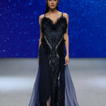Embracing the mystical allure of "Midnight Mirage," the Nocturnal Fairy Veil Gown in deep black boasts intricate beadwork and flowing tulle, evoking a night fairy’s wings. Ideal for galas, its elegance captivates.